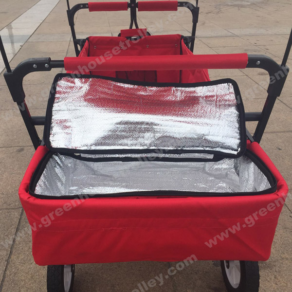 *Open Size: 104x54x117cm ( approx. ) *Folding Size: 76x54x20cm *Load Capacity: 70 kgs *PU Wheel: 8''x1.75'' *Canopy *Warming bag *600D Oxford Two-layer cloth bucket with PVC coating. *2pcs of bottle pockets