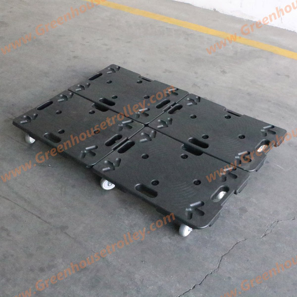 - Dollies can be connected vertically and horizontally to create desired platform size