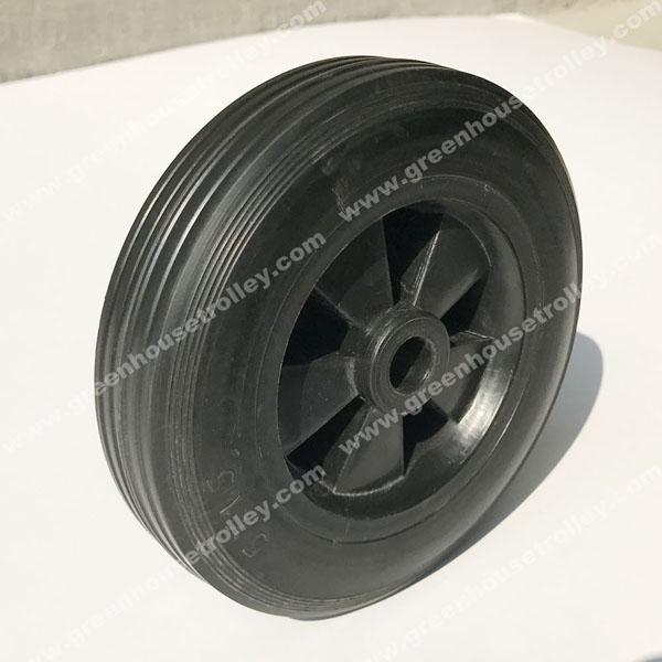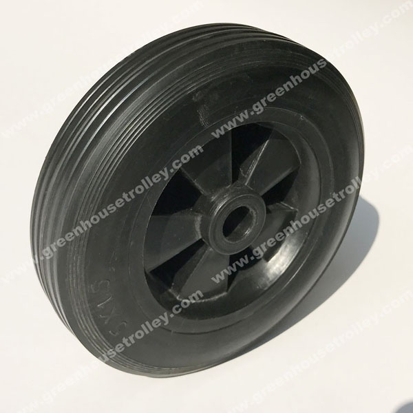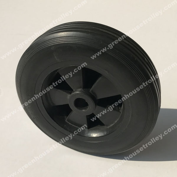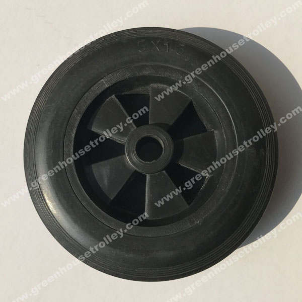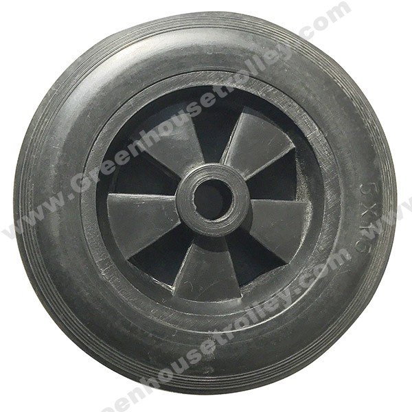 Solid rubber wheel for hand truck 5‘’x1.5'' Load capacity: 60kg PP wheel center Plain bore: 12.7mm