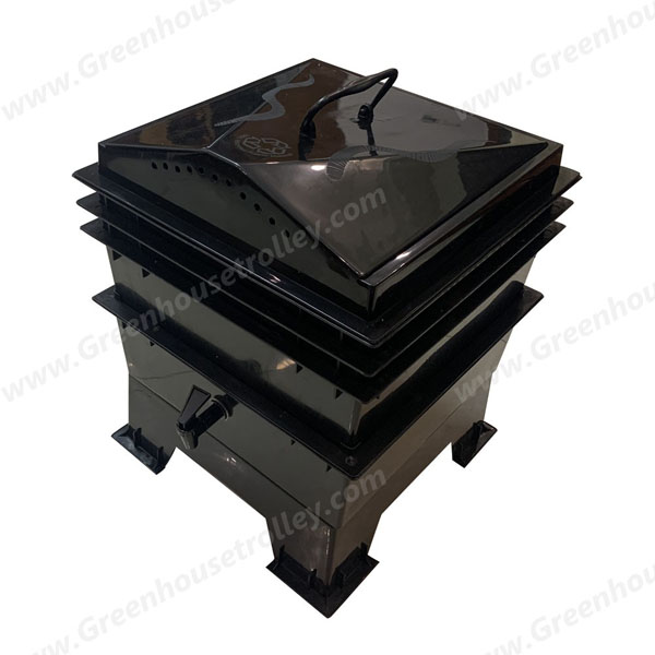 * The redesigned lid converts to a handy stand for trays while harvesting the compost.