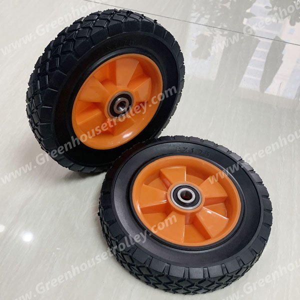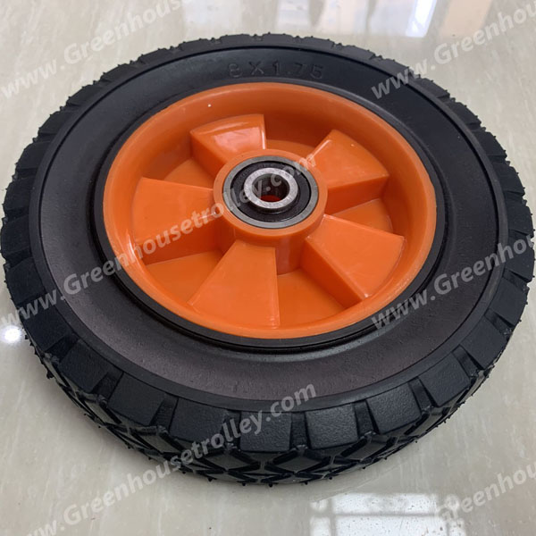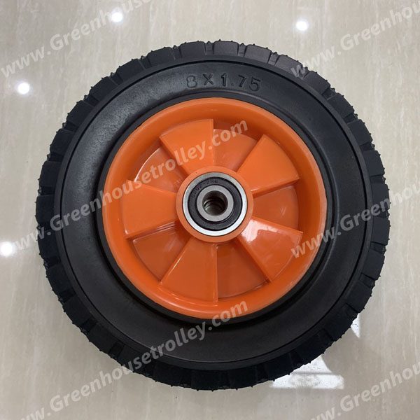 Solid rubber wheel Item No. SR0801 Size: 8''x1.75'' Max Load: 60kg Plastic rim Ball bearing