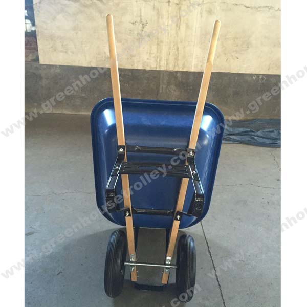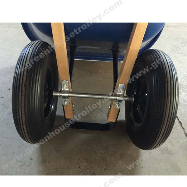 215L heavy duty plastic twin wheel wheelbarrow with PU foam tires twin wheel barrow WH9600