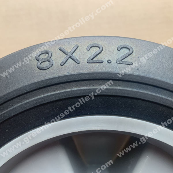 Solid rubber wheel for hand truck 8‘’x2.2'' Load capacity: 100kg PP wheel center Ball bearing: 16mm