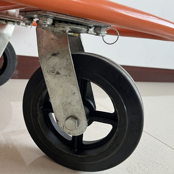 Maneuverable - Cart is supported by pro-grade, non-marring, 8" casters that roll smoothly even under heavy loads; it features a tight-turning radius with two swivel casters, as well as a wheel brake for safety