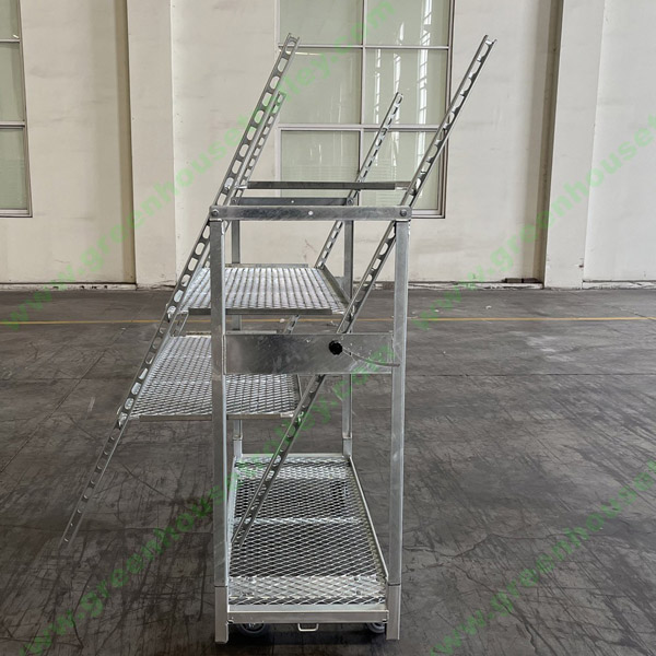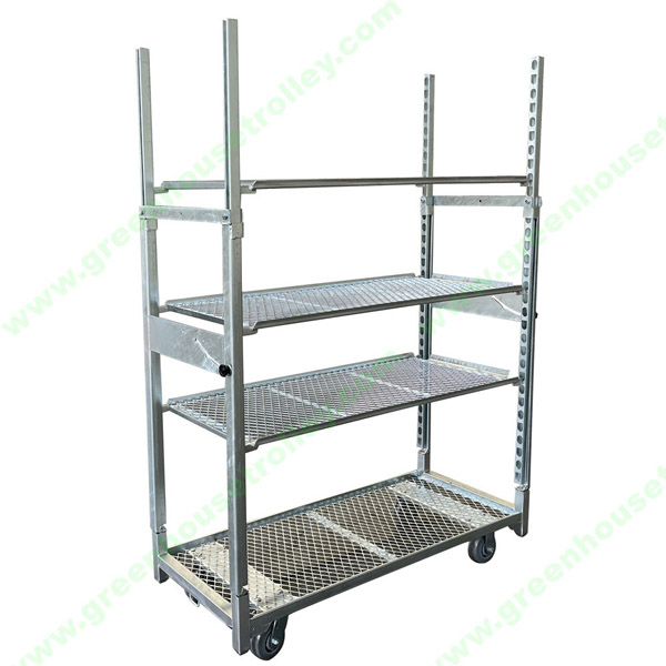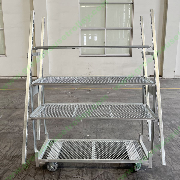 Heavy duty Folding Danish Trolley Flower Display Rack Multi Shelves Greenhouse Transportation Trolley Cart Nursery Shelf